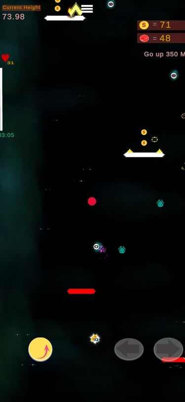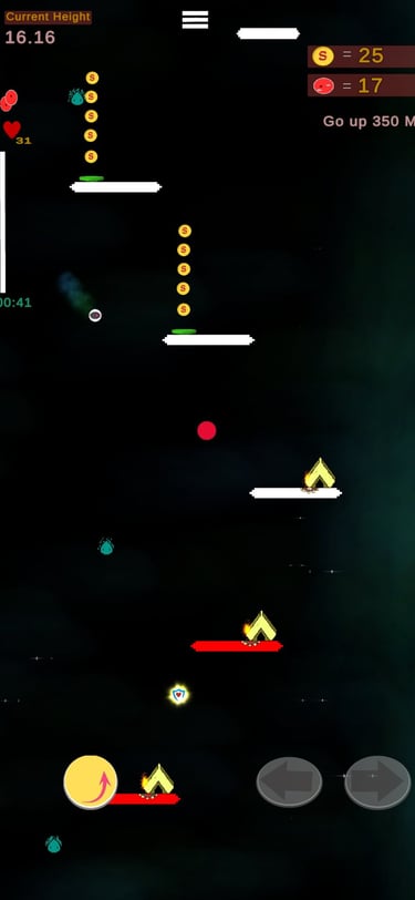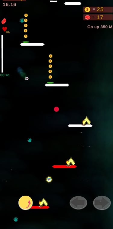 Es un juego de plataformas verticales desafiantes y adictivo donde tu objetivo es rebotar tan alto como puedas. Con dos métodos de juego. -Niveles y Modo infinito-, este juego combina precisión, estrategia y reflejos rápidos.